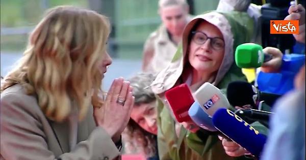 (Agenzia Vista) Tirana, 16 maggio 2025 La premier Meloni arriva a Tirana per il vertice della Comunità politica europea. "Mi fradicio", ha detto ai giornalisti lasciando il punto stampa sotto una pioggia battente. Ebs Fonte: Agenzia Vista / Alexander Jakhnagiev