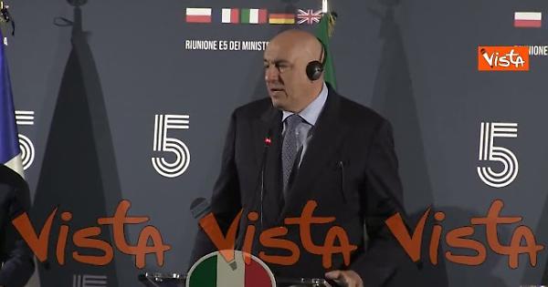 (Agenzia Vista) Roma, 16 maggio 2025 "Cinque ministri diversi, con cinque coalizioni diverse, cinque storie politiche diverse. Abbiamo tutti la stessa idea della necessità di un'Europa della difesa da costruire, abbiamo tutti la stessa visione. Pensiamo che vogliamo costruire in modo concreto un'Europa della Difesa. Di fronte al più grande pericolo in Europa stiamo dando una risposta concreta. Solo costruendo l'Europa della difesa saremo presi in considerazione dagli Stati Uniti e dalla Nato" così il ministro della Difesa Guido Crosetto, intervenendo alla conferenza a margine della riunione dei ministri della difesa E5. Fonte: Agenzia Vista / Alexander Jakhnagiev