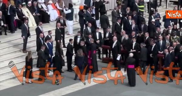 Il vice Presidente Jd Vance arriva sul sagrato di San Pietro per la Mesa di insediamento di Papa Leone XIV.