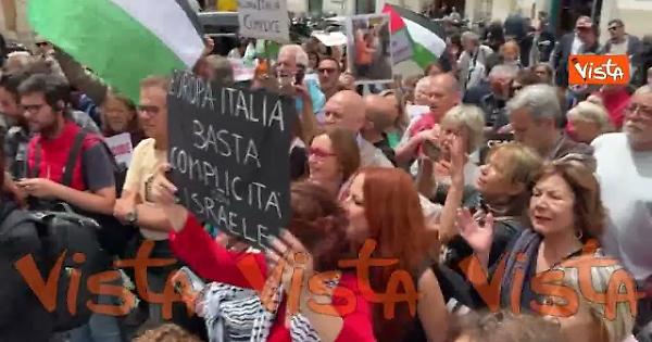 "Basta complicità con Israele", i cartelli al flashmob per Gaza a Montecitorio
