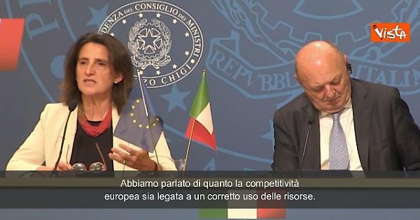"Abbiamo parlato di molti aspetti legati alla competitività dell'Unione Europea. Abbiamo parlato di quanto la competitività europea sia legata a un corretto uso delle risorse e anche al fatto che possiamo contare su un sistema energetico che non si basi su risorse che non produciamo, come i combustibili fossili, il che può creare ulterirori difficoltà" così la Commissaria Europea per la Concorrenza e vicepresidente esecutiva della Commissione Teresa Ribera Rodríguez, intervenendo alla conferenza stampa congiunta con il Ministro Pichetto Fratin, a seguito dell'incontro bilaterare.