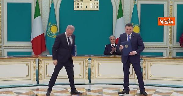 La Presidente del Consiglio Giorgia Meloni e il Presidente della Repubblica del Kazakistan Qasym-Jomart Toqaev assistono alla cerimonia dello scambio di accordi tra Italia e Kazakistan.
