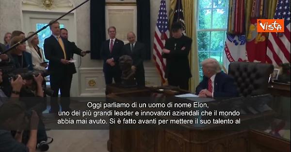 "Oggi parliamo di un uomo di nome Elon, uno dei più grandi leader e innovatori aziendali che il mondo abbia mai avuto. Si è fatto avanti per mettere il suo talento al servizio della nostra nazione e lo apprezziamo. Ha lavorato in modo instancabile, contribuendo a guidare il programma di riforma governativa più ampio e significativo", lo ha detto Donald Trump nello Studio Ovale per il saluto a Musk per la fine del suo mandato al Doge. La partenza era prevista d tempo, l'incarico era stato accordato per una durata di 130 giorni.