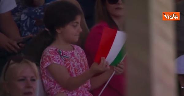 La premier Giorgia Meloni arriva ai Fori Imperiali a piedi per la tradizionale parata del 2 Giugno, la festa della Repubblica.