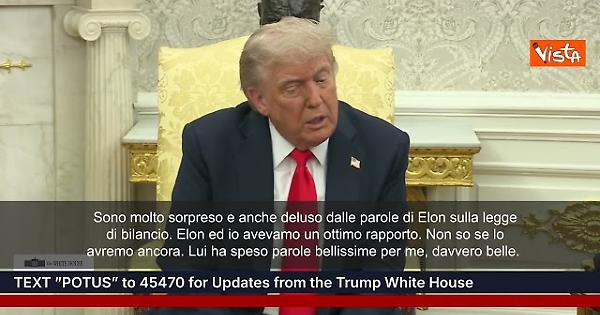Sono molto sorpreso e anche deluso dalle parole di Elon sulla legge di bilancio. Elon ed io avevamo un ottimo rapporto. Non so se lo avremo ancora. Lui ha speso parole bellissime per me, davvero belle. Mi ha sostenuto, è stato al mio fianco, ha detto che avevo ragione su tutto. Ed è vero, avevo ragione su tutto. Ed ho ragione anche sulla mia legge, “Big Beautiful Bill”. Così Trump alla Casa Bianca.