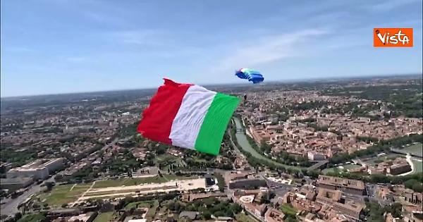2 Giugno, l'esibizione dei paracadutisti su Via dei Fori Imperiali vista dall'elicottero