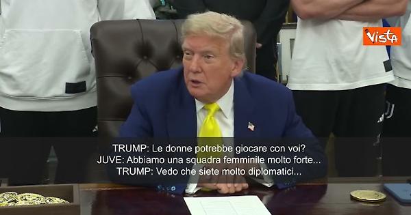 “Le donne potrebbe giocare con voi?” Così Trump scherza con i giocatori della Juve ricevuti alla Casa Bianca insieme alla dirigenza della squadra. La risposta è arrivata da uno dei manager dei bianconeri: “Abbiamo una squadra femminile molto forte”. Trump ha replicato: "Vedo che siete molto diplomatici..."