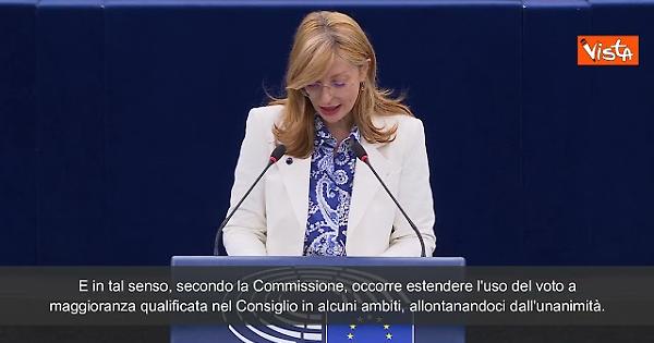 "Bisogna modificare i trattati ove necessario per rafforzare l'Unione. Per preparare l'Unione Europea all'allargamento occorre esaminare qualsiasi opzione, a partire dall'utilizzare a pieno il potenziale dei trattati attuali. E in tal senso, secondo la Commissione, occorre estendere l'uso del voto a maggioranza qualificata nel Consiglio in alcuni ambiti, allontanandoci dall'unanimità" così la Commissaria Europea alle Startup, la Ricerca e l'Innovazione Ekaterina Zaharieva, intervenendo in seduta plenaria al Parlamento Europeo.