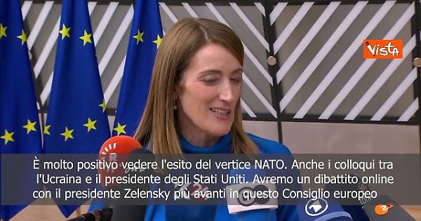 Metsola (Parlamento Ue): Positivo esito vertice Nato, bene i colloqui tra Zelensky e Trump