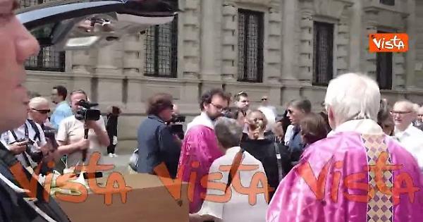 L'ultimo saluto dei cari ad Arnaldo Pomodoro davanti alla Chiesa di San Fedele