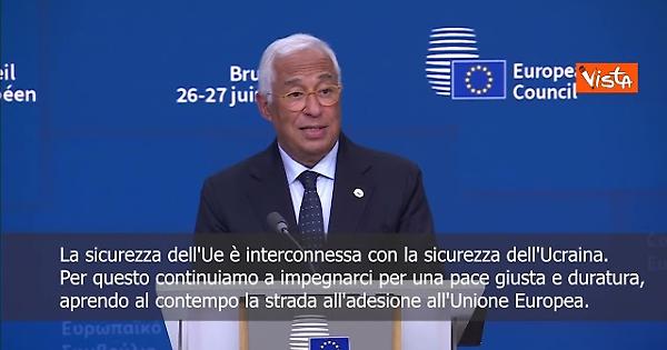 “La sicurezza dell'Europa è interconnessa con la sicurezza dell'Ucraina. Per questo continuiamo a impegnarci per una pace giusta e duratura, aprendo al contempo la strada all'adesione all'Unione Europea. […] Allo stesso tempo, continuiamo a esercitare pressioni sulla Russia e abbiamo adottato 17 pacchetti di sanzioni per l'espulsione e stiamo lavorando per implementarne uno nuovo”. Così il Presidente del Consiglio Europeo Antonio Costa durante la conferenza stampa al termine dei lavori del Consiglio europeo.
