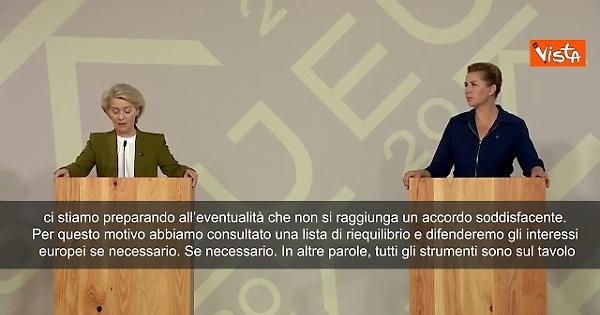 “I negoziati sui dazi con gli Stati Uniti sono in corso. Mentre parliamo, il commissario Sefcovic è a Washington oggi. Voglio solo dire che siamo pronti per un accordo. Vogliamo una soluzione negoziata, ma sapete tutti che, allo stesso tempo, ci stiamo preparando all’eventualità che non si raggiunga un accordo soddisfacente. Per questo motivo abbiamo consultato una lista di riequilibrio e difenderemo gli interessi europei se necessario. Se necessario. In altre parole, tutti gli strumenti sono sul tavolo”. Lo ha affermato la Presidente della Commissione europea Ursula von der Leyen in un punto stampa ad Aarhus, Danimarca, con la premier Mette Frederiksen, per l’avvio della presidenza danese del Consiglio Ue.