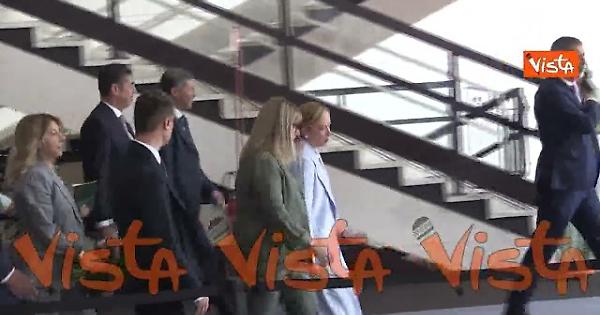 La premier Meloni lascia il Palazzo dei Congressi all'Eur, dove è in corso il XX Congresso della Cisl.