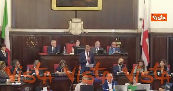 (Agenzia Vista) Milano, 21 luglio 2025 Il sindaco di Milano Giuseppe Sala, indagato all'interno dell'inchiesta sull'urbanistica, si scontra durante il suo intervento al consiglio comunale con il consigliere di Fratelli d'Italia Enrico Marcora, che aveva postato una sua immagine fake vestito da galeotto. Fonte: Agenzia Vista / Alexander Jakhnagie