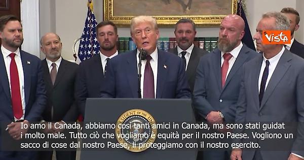 (Agenzia Vista) Washington, 31 luglio 2025 “Devono pagare una tariffa equa. Tutto qui, è molto semplice. Hanno applicato tariffe molto, molto alte ai nostri agricoltori, alcune fino al 200%. E hanno trattato i nostri agricoltori molto male, hanno trattato il nostro Paese molto male per annni. Io amo il Canada, abbiamo così tanti amici in Canada, ma sono stati guidati molto male. Tutto ciò che vogliamo è equità per il nostro Paese.” Così il Presidente degli Stati Uniti Donald Trump sui dazi e anche dopo la decisione del Canada di riconoscere lo Stato di Palestina. Courtesy: The White House Fonte: Agenzia Vista / Alexander Jakhnagiev