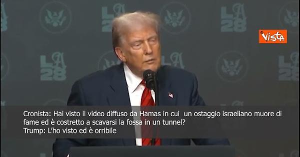 (Agenzia Vista) Washington, 06 agosto 2025 “L'ho visto, penso che sia orribile.” Così il Presidente degli Stati Uniti Donald Trump risponde a un cronista che gli chiede se ha visto il video diffuso da Hamas, in cui un ostaggio israeliano muore di fame ed è costretto a scavarsi la fossa in un tunnel. Courtesy: X Fonte: Agenzia Vista / Alexander Jakhnagiev