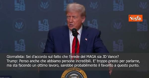 “Beh, penso che molto probabilmente, in tutta onestà, sia il vicepresidente JD Vance, sarebbe il favorito”. Così il Presidente degli Stati Uniti Donald Trump risponde a un giornalista che gli chiede chi sarebbe il miglior successore del movimento MAGA (Make America Great Again).