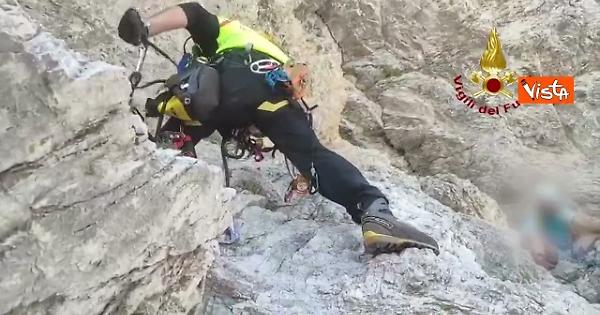Intervento di soccorso per l'equipaggio del reparto volo Veneto dei Vigili del fuoco sulla Cengia di Trevisani, nel territorio di Claut.