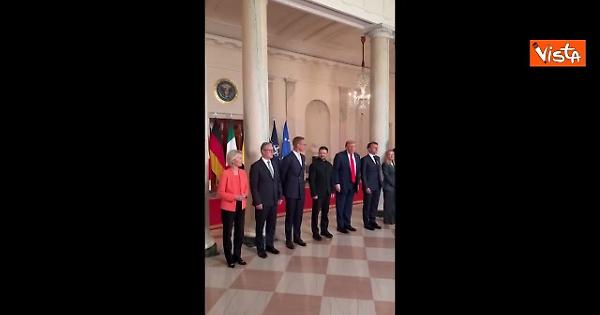 Il Presidente Usa Donald Trump, dopo la foto di gruppo con i leader Ue alla Casa Bianca, ha indicato con il dito il dipinto con l'iconica immagine dell'attentato di Butler, con lui che fa il gesto con il pugno gridando "Fight, fight, fight", dopo che un proiettile gli ha sfiorato l'orecchio, ferendolo.