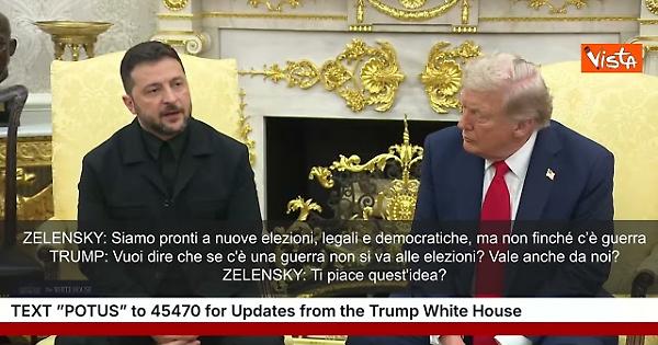 "Devono essere organizzate in circostanze sicure, perché durante la guerra non si possono tenere elezioni. Servirebbe una tregua, che dovrebbe valere in terra, mare e cielo, affinché le elezioni siano democratiche e legali”. Così Zelensky rispondendo a un cronista alla Casa Bianca sulla possibilità di nuove elezioni in Ucraina. Il Presidente Usa Trump gli risponde scherzando: "Quindi mi stai dicendo che durante la guerra non si possono avere elezioni? Allora lasciami dire: tra tre anni e mezzo, cioè se capita che siamo in guerra con qualcuno, niente più elezioni?", riferendosi alle Presidenziali Usa del 2028. "Ti piace questa idea?", replica ridendo Zelensky.