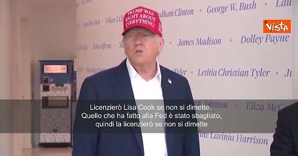 "Licenzierò Lisa Cook se non si dimette. Quello che ha fatto alla Fed è stato sbagliato, quindi la licenzierò se non si dimette", lo ha detto Donald Trump ai cronisti.