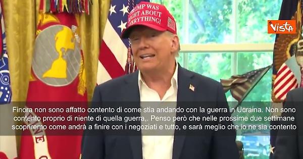 "Non sono contento di niente di quella guerra, di niente... Penso che nelle prossime due settimane scopriremo come andrà a finire, e sarà meglio che io sia molto contento." Lo ha detto Trump parlando con i cronisti alla Casa Bianca.