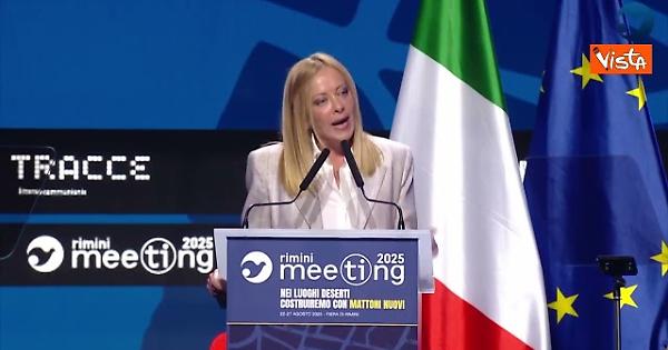 "Finalmente dopo tre anni e mezzo in cui la Russia non ha dato alcun segnale di dialogo, in cui pretendeva banalmente la capitolazione di Kiev, si sono aperti spiragli per un percorso negoziale, spiragli che sono stati resi possibili grazie a un'iniziativa certo del Presidente degli Stati Uniti Trump, ma ancora di più grazie all'eroica resistenza del popolo ucraino e al compatto sostegno che l'Occidente, l'Europa e l'Italia hanno garantito, nonostante un'opinione pubblica non sempre convinta". Così la premier, Giorgia Meloni, intervenendo al Meeting di Rimini.