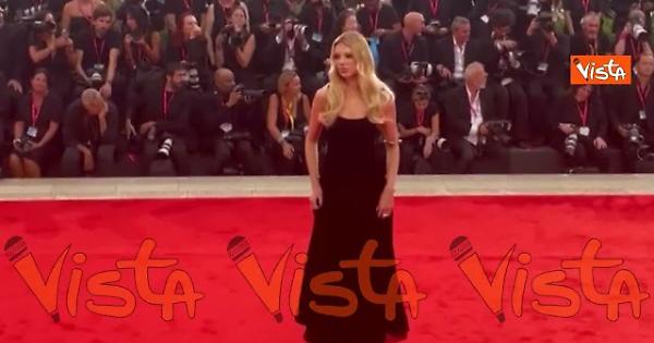 Danielle Marcan elegantissima sfila sul red carpet in lungo abito total black con un originale gioiello sul braccio.