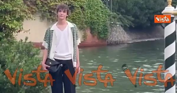 Giulio Feltri in posa per i fotografi al Lido per l'82esima Mostra del Cinema di Venezia.