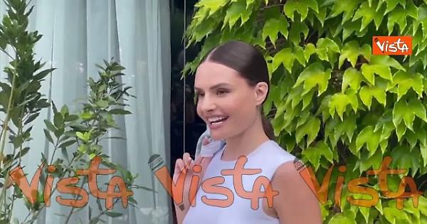 L'influencer Maryna in posa per i fotografi al Lido lancia loro baci al suo arrivo al Lido per l'82esima Mostra del Cinema di Venezia.
