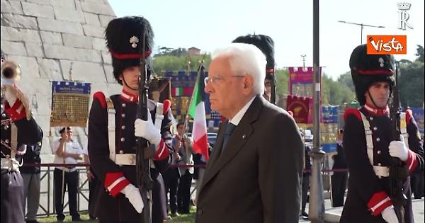 Il Presidente della Repubblica, Sergio Mattarella depone due corone d’alloro a Porta San Paolo e al Parco della Resistenza a Roma. / Quirinale