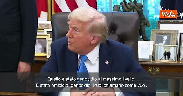 "Non è forse vero che qualcuno ha commesso un genocidio il 7 ottobre? Cosa ne pensi? Quello è stato genocidio al massimo livello. È stato omicidio, genocidio. Puoi chiamarlo come vuoi. Ma piccoli bambini sono stati tagliati a metà. Le braccia sono state tagliate alle persone. Le teste sono state mozzate. Questo è genocidio. È genocidio anche questo, credo" così il Presidente degli Stati Uniti Donald Trump, in un punto stampa alla Casa Bianca.