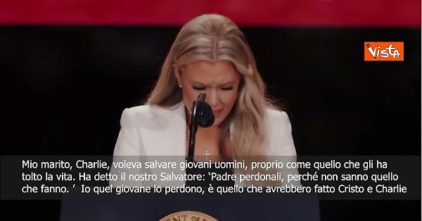 “Quell'uomo, quel giovane, lo perdono. Lo perdono perché è ciò che ha fatto Cristo ed è ciò che farebbe Charlie. La risposta all'odio non è l'odio. La risposta che conosciamo dal Vangelo è l'amore.” Così la vedova di Charlie Kirk, l'attivista Maga ucciso in un campus universitario, nello Utah, durante I funerali del marito.