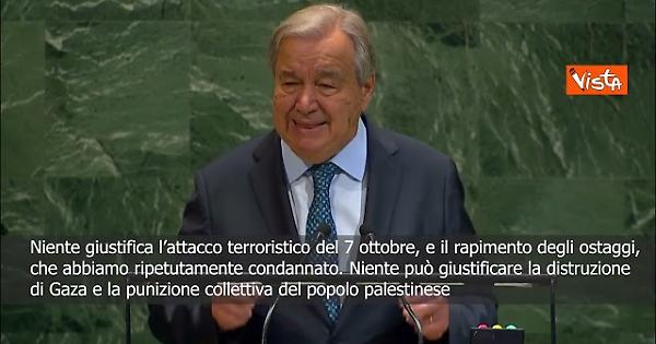 “A Gaza serve un cessate al fuoco immediato, il rilascio degli ostaggi immediato, e per una pace duratura serve una soluzione a due stati.” Così il Segretario Generale delle Nazioni Unite, Antonio Guterres, durante l'Assemblea Generale dell'Onu, a New York.