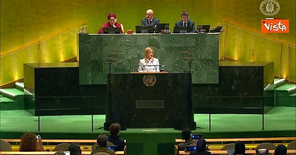 (Agenzia Vista) Usa, 25 settembre 2025 "Colleghi, delegati, signore e signori, quest’anno non celebriamo solo gli ottant’anni della nascita di questo consesso, ma anche i 70 anni dell’adesione dell’Italia alle Nazioni Unite. Un doppio anniversario che ci carica ancora di più della responsabilità di tenere fede ai principi e ai valori istitutivi di questa Organizzazione. Nella consapevolezza che, per farlo, dobbiamo saper rendere efficaci gli strumenti per difendere quei principi e quei valori nel nostro tempo, perché la nostra azione possa essere più incisiva e davvero aderente alle necessità delle nostre società. ". Lo ha detto la premier Giorgia Meloni parlando all'Assemblea Generale dell'Onu. Chigi Fonte: Agenzia Vista / Alexander Jakhnagiev
