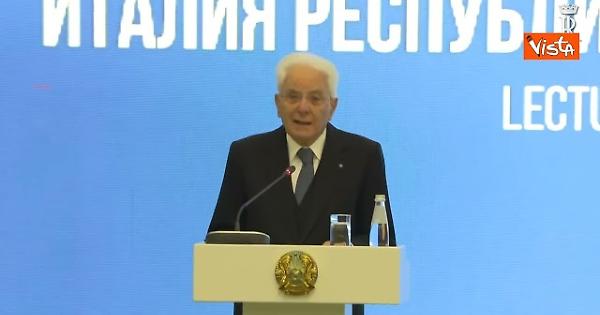 (Agenzia Vista) Astana, 30 settembre 2025 "Italia e Kazakhstan condividono la responsabilità di contribuire a percorsi di dialogo e che aiutino a mantenere la pace e la stabilità, a promuovere lo sviluppo nel rispetto dei principi di giustizia, equità, solidarietà, leale collaborazione. In tale spirito, apprezziamo pienamente il costante riferimento delle istituzioni kazake alla centralità della Carta delle Nazioni Unite e dei suoi valori, quale bussola per affrontare ogni crisi e ogni conflitto da una prospettiva equilibrata e costruttiva" così il Presidente della Repubblica Sergio Mattarella durante la sua visita all'Accademia dell'Amministrazione di Astana, in Kazakistan. Fonte: Agenzia Vista / Alexander Jakhnagiev