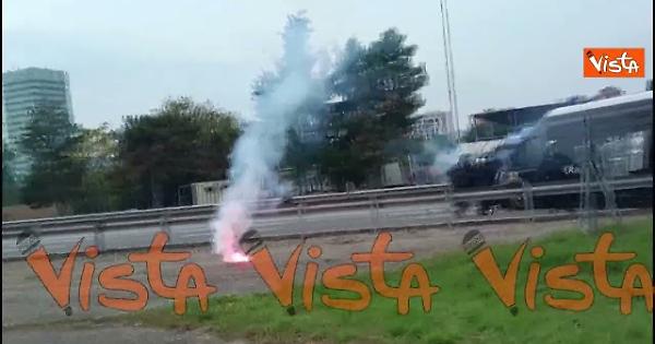 Scontri a corteo pro Gaza in Tangenziale Est a Milano. Bombe carta, insulti a giornalisti e fumogeni