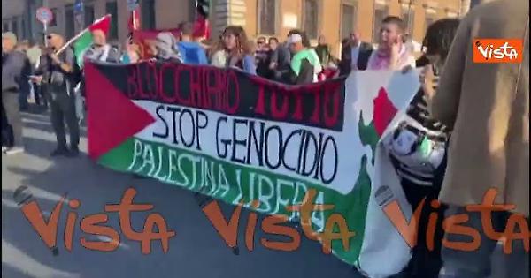 La fetta di cocomero, diventata simbolo della Palestina, sfila al corteo pro Gaza a Roma