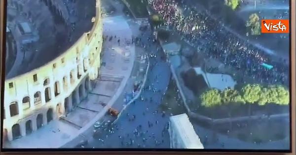 Corteo pro Gaza a Roma, migliaia di manifestanti al Colosseo. Le mmagini dall'alto