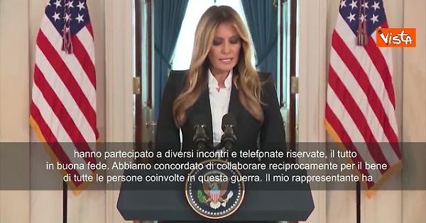 “Molte cose sono successe da quando il Presidente Putin ha ricevuto la mia lettera lo scorso agosto. Mi ha risposto per iscritto, manifestando la sua disponibilità a interagire direttamente con me e illustrando i dettagli riguardanti i bambini ucraini residenti in Russia. Da allora, il Presidente Putin e io abbiamo mantenuto un canale di comunicazione aperto riguardo al benessere di questi bambini. Negli ultimi tre mesi, entrambe le parti hanno partecipato a diversi incontri e telefonate riservate, il tutto in buona fede. Abbiamo concordato di collaborare reciprocamente per il bene di tutte le persone coinvolte in questa guerra. Il mio rappresentante ha lavorato direttamente con la squadra del Presidente Putin per garantire il ricongiungimento sicuro dei bambini con le loro famiglie tra Russia e Ucraina. Infatti, otto bambini sono stati ricongiunti alle loro famiglie nelle ultime 24 ore”. Lo ha annunciato la First Lady americana Melania Trump.
