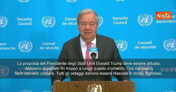 "Esorto Israele e Hamas a rispettare pienamente l’accordo sul cessate il fuoco e il rilascio degli ostaggi, è un punto di svolta disperatamente necessario che deve segnare l’inizio della fine di questa devastante guerra. La proposta del Presidente degli Stati Uniti Donald Trump deve essere pienamente attuata. Abbiamo aspettato fin troppo a lungo questo momento. Ora dobbiamo farlo davvero contare. Tutti gli ostaggi devono essere rilasciati in modo dignitoso. Un cessate il fuoco permanente deve essere assicurato. Il bagno di sangue deve finire una volta per tutte. Servono accessi umanitari e finanziamenti adeguati per la ripresa, oltre a un percorso politico credibile verso la soluzione dei due Stati.”, lo ha detto il Segretario Generale dell'Onu Antonio Guterres.
