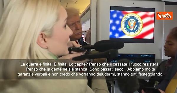 (Agenzia Vista) Usa, 13 ottobre 2025 La guerra è finita. È finita. Lo capite? Penso che il cessate il fuoco resisterà. Penso che la gente ne sia stanca. Sono passati secoli. Abbiamo molte garanzie verbali e non credo che vorranno deludermi, stanno tutti festeggiando". Lo ha detto Trump a bordo dell'Air Force One durante il suo viaggio verso Israele. White House Fonte: Agenzia Vista / Alexander Jakhnagiev