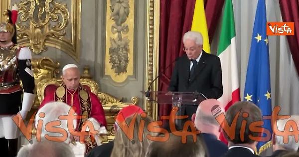 "L’aggressione russa su larga scala in Ucraina, a distanza di quasi quattro anni, continua a mietere vittime civili innumerevoli, a seminare morte e distruzione, a gettare una inquietante ombra di insicurezza sull’intero continente europeo. In Medio Oriente, alla ferita atroce dell’attacco terroristico del 7 ottobre 2023, ha fatto seguito una reazione che ha superato non soltanto criteri di proporzionalità, ma anche i confini di umanità. Oggi c’è “una scintilla di speranza” - come Vostra Santità ha rimarcato - che va sostenuta con convinzione". Lo ha detto il Presidente della Repubblica in una dichiarazione dopo aver accolto Papa Leone XIV al Quirinale.