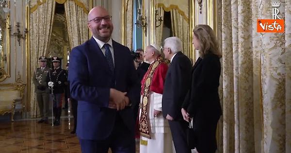 Papa Leone al Quirinale con Mattarella stringe la mano a Meloni e Ministri
