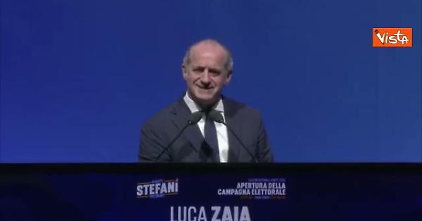 Applausi per Zaia e cori "Luca, Luca" all'apertura della campagna elettorale per Stefani Presidente alle regionali venete a Padova.