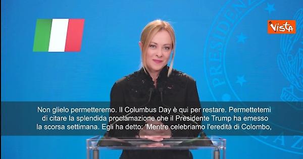 "So che ci sono forze che cercano di dividerci, di ridefinire la nostra storia e di distruggere le nostre tradizioni condivise. La chiamano cultura woke. Cercano di cancellare la nostra cultura. Si sbagliano. Tentare di eliminare il Columbus Day non è solo un attacco a una statua o a una data sul calendario. È un tentativo di cancellare la storia fondativa degli italo-americani", di "negare il posto duramente conquistato che essi occupano nel tessuto di questa nazione. Non glielo permetteremo. Il Columbus Day è qui per restare. Permettetemi di citare la splendida proclamazione che il Presidente Trump ha emesso la scorsa settimana. Egli ha detto: 'Mentre celebriamo l'eredità di Colombo, riconosciamo anche i contributi degli innumerevoli italo-americani che, come lui, hanno contribuito senza sosta alla nostra cultura e al nostro modo di vivere. Ancora oggi, gli Stati Uniti e l'Italia condividono un legame speciale, radicato nei valori senza tempo della fede, della famiglia e della libertà'. Ben detto, Presidente Trump. Grazie". Così la premier Giorgia Meloni, nel videomessaggio inviato in occasione del 50esimo anniversario della Niaf, la National Italian American Foundation.