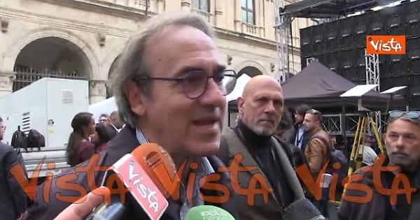 (Agenzia Vista) Roma, 21 ottobre 2025 "La solidarietà è un atto dovuto, quasi scontato. Cosa si dovrebbe dire a una persona che ha rischiato la vita? Direi che la maggioranza ha fatto bene per carità. Però chi governa ha delle responsabilità, in primis quella di impedire che i giornalisti siano messi all'angolo da queste continue querele temerarie. Mentre Ranucci usciva per la denuncia per il suo attentato gli veniva consegnata un'ennesima querela. E poi c'è una questione fondamentale: chiunque governa, il potente di turno, non può controllare il servizio pubblico radiotelevisivo, che deve essere libero e quello che è accaduto in questi mesi in questi anni sul giornalismo d'inchiesta in Italia è inaccettabile. Si è voluto mettere la il bavaglio al giornalismo d'inchiesta e questo è un elemento che dovrebbe preoccupare" così Angelo Bonelli di Avs a margine della manifestazione per Ranucci a Roma. Fonte: Agenzia Vista / Alexander Jakhnagiev