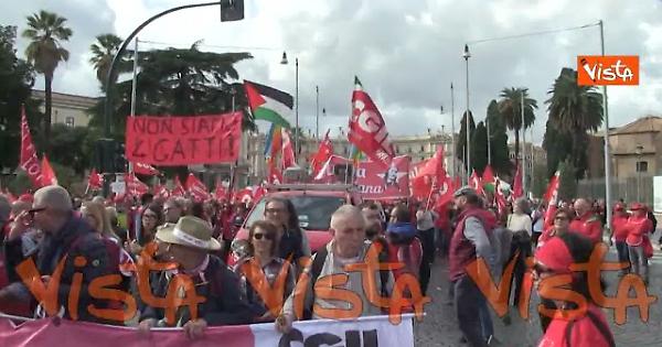 Si è tenuta a Roma la manifestaizone "Democrazia al al avoro", organizzata dalla Cgil in risposta alla manovra appena presentata. Il corteo è partito da piazza della Repubblica diretto verso piazza San Giovanni dove è stato allestito il palco. Durante il corteo uno dei gruppi ha cantato "Bandiera rossa".