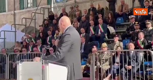 (Agenzia Vista) Ascoli Piceno, 31 ottobre 2025 “Non so se esiste un ordine, o almeno io non lo conosco, un modo per dire che possono sgranchirsi un attimo le gambe, visto che è un'ora e mezza che sono qua e ci dovranno ancora stare… lo inventi lei. Non so, qualcosa come «sgranchirsi ordinatamente»”. La battuta del Ministro Crosetto rompe per un istante la compostezza della cerimonia del giuramento dei Volontari in Ferma Iniziale ad Ascoli, regalando un gesto di rispettosa leggerezza ai giovani soldati schierati, quasi di affetto paterno per i giovani militari. Fonte: Agenzia Vista / Alexander Jakhnagiev