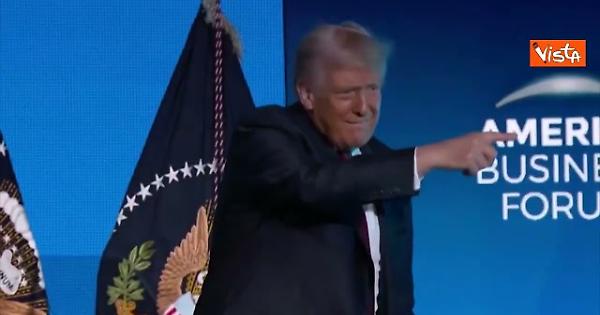 Trump balla la sua "Victory dance" al Business Forum di Miami per festeggiare un anno dall'elezione